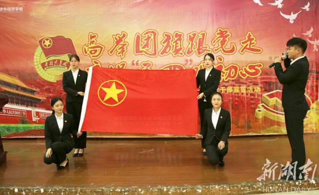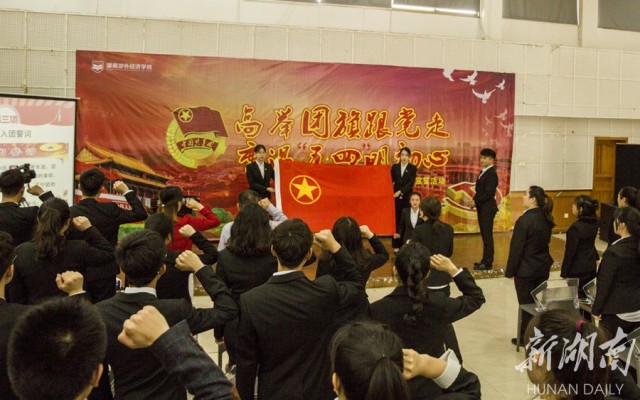 “我志愿加入中国共产主义青年团,坚决拥护中国共产党的领导……”5月4日,,太阳城娱乐千名共青团员骨干佩戴团徽,面对鲜红的团旗,紧握右拳,铿锵有力地重温入团誓词,把此次“高举团旗跟党走 重温五四明初心”主题团日活动推向了高潮。邓建平 摄