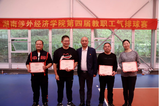 在颁奖仪式中,校党委副书记、副校长、工会主席汪东明为获得冠军、亚军及季军的代表队颁发奖金及证书,校工会副主席、内控办主任马洪典为第四名至第八名获奖代表队颁发奖金及证书。
