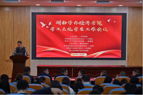 会上,学生工作处邝继红处长作了学工系统学风建设阶段性工作总结,鞠晨曦副校长作了重要讲话。会议由学工处学生科科长田柳文主持,各二级学院党总支书记和全体辅导员参加了会议。