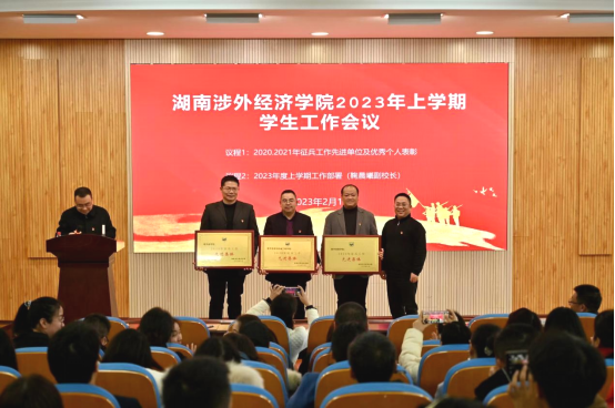 大会对2020年、2021年征兵工作先进单位和优秀个人进行了表彰,副校长鞠晨曦分别为受表彰单位和个人颁发奖牌和证书。