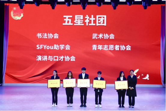随后,与会领导分别为优秀共青团荣誉榜、芙蓉学子、五四红旗团支部、国家奖学金、五星社团、太阳城娱乐杰出青年的获奖者颁奖。各奖项获奖代表彭楷程、罗梓成、欧涵、艾悦心、谭慧鸿、王嘉妍同学依次发表获奖感言。