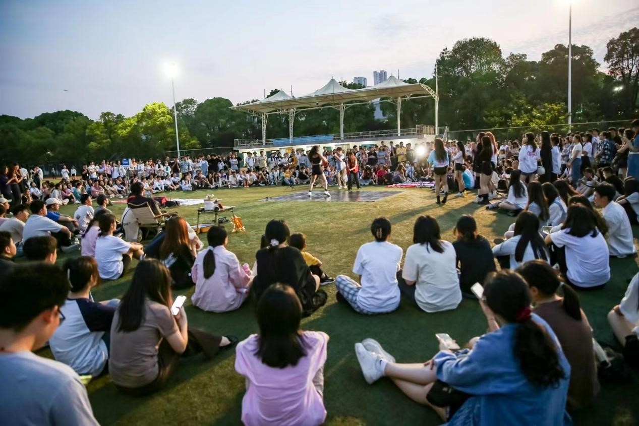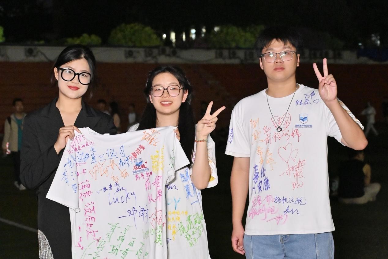 本次嘉年华活动由最好的我们(打卡墙)、星光大道(走红毯)、以你为名(许愿墙)、草坪音乐节(歌曲)、舞林大会(舞蹈)、燃烧你的热情(烧烤吧)、最好的你(T恤涂鸦)七个环节构成。毕业生们穿着精心挑选的衣服,走过草地秀场,留下一道道靓丽的青春背影。“创意打卡点”吸引无数毕业生驻足拍照,将笑容定格在一张张照片上。同学们邀请自己的朋友、老师,一起走上红毯,享受美好一刻。书包、笔记本、u盘、玩偶、戒指等众多文创产品琳琅满目,既体现了我校对毕业生们的满满爱意,也增添了同学们的参与热情,每个人都爱不释手。夜幕降临,同学们在舒适的微风里席地而坐,一阵阵悠扬的乐声徜徉在草坪上空,无数欢声笑语共同构成了青春的风采,共赏一场音乐盛宴。一旁的烧烤摊烟火气十足,毕业生们和好友一起撸串,大快朵颐。最后的“青春印记”环节,大家用画笔在白色T恤上留下美好祝福,在毕业季里绘下不一样的青春回忆。