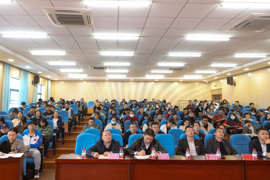 11月28日下午,我校党委书记、督导专员杨念以“深入学习贯彻习近平新时代中国特色社会主义思想,推进学校高质量发展”为题,在新综合楼裙楼D202为全校党总支书记、副书记、学生党支部书记近160人讲授专题党课。本次党课由校党委组织部部长李方圆主持。