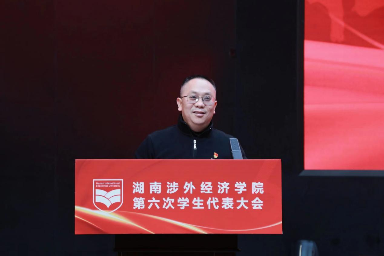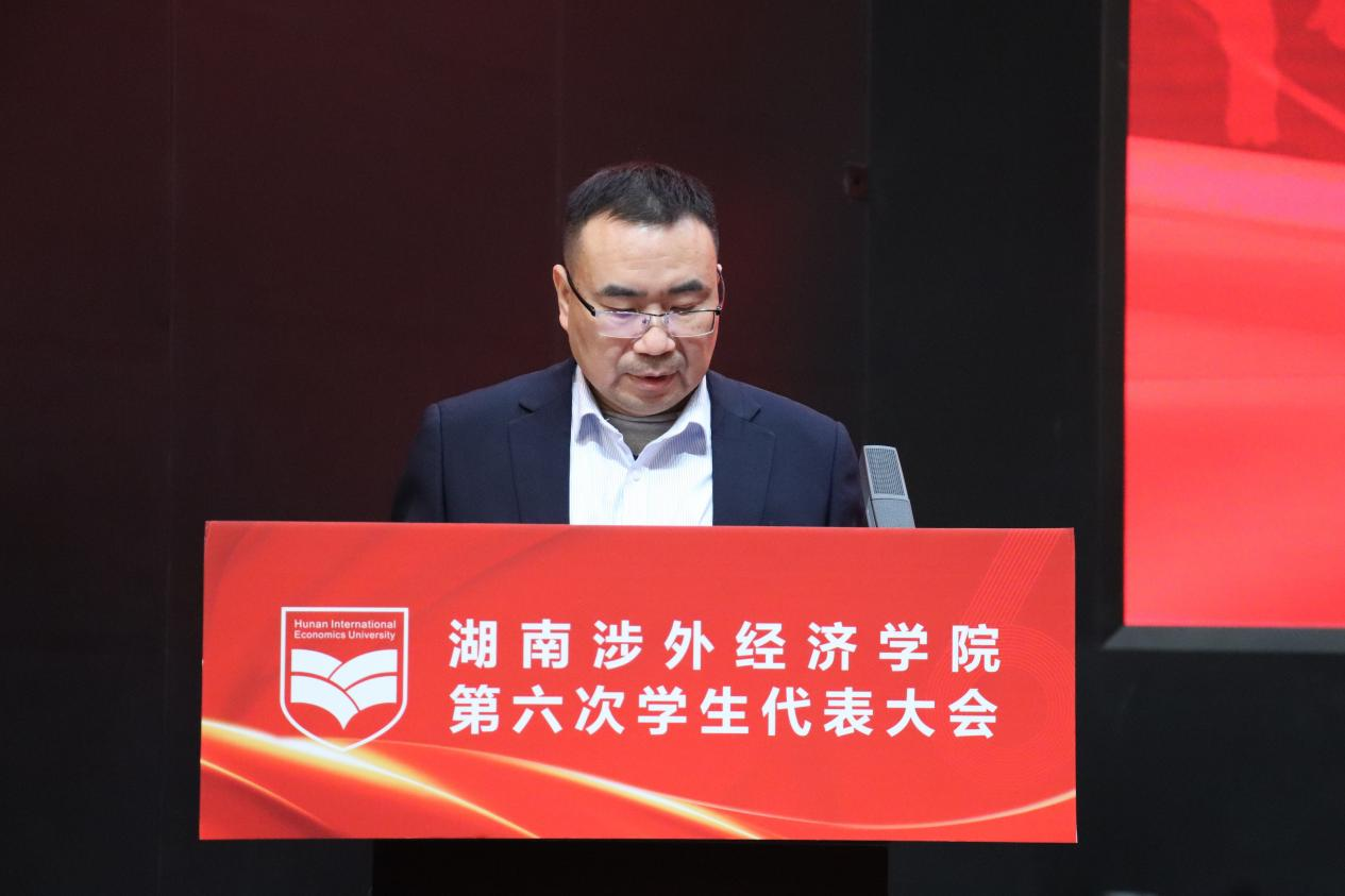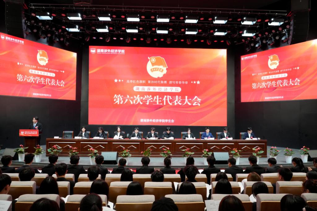 为筑牢思想阵地,夯实思想基础,12月9日,我校第六次学生代表大会在世纪讲坛隆重召开。校党委委员、副校长鞠晨曦,校党委宣传部部长兼团委书记戴薇,学工部部长邝继红以及各二级学院党总支书记、团总支书记出席会议。我校321名学生代表、湖南第一师范学院学生会主席团代表、湖南财政经济学院学生会主席团代表、湖南警察学院主席团代表、长沙医学院主席团代表以及长沙环保学院学生会主席团代表参加此次大会。