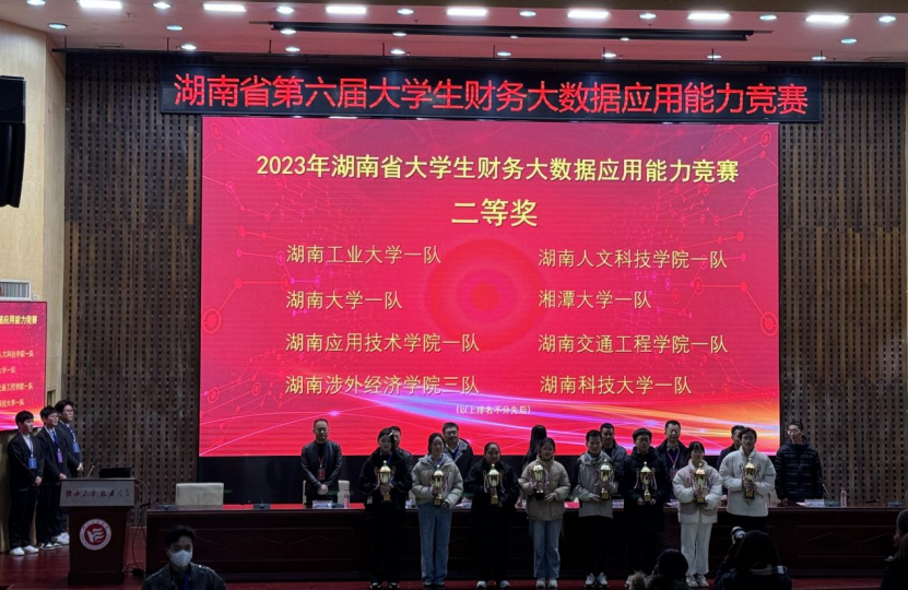 12月23日,由湖南省教育厅主办、湖南工程学院承办的湖南省第六届大学生财务大数据应用能力竞赛落下帷幕,此项比赛是2023年湖南省教育厅组织举办的31项全省大学生学科竞赛之一。该赛事由两个阶段组成,第一阶段为网络资格赛,网络资格赛于2023年12月2日各高校在线上举行,来自湖南大学、湖南师范大学、湘潭大学等省内43所高校共计150支队伍参赛,比赛竞争激烈,专业性极强,比赛过程中,面对强劲对手,我校学子毫不怯场,精诚团结,沉着冷静。经过激烈的资格赛选拔,我校商学院派出的4支队伍三队晋级湖南省排位赛,一队晋级全国邀请赛。12月23日,通过与各大知名院校组成的多支队伍的激烈角逐,我校学子最终荣获2023年全国大学生财务大数据应用能力竞赛一等奖1项、第六届湖南省大学生财务大数据应用能力竞赛湖南省二等奖3项的好成绩。