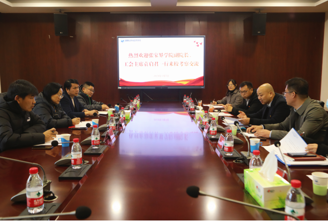 1月5日上午,吉首大学张家界学院副院长、工会主席袁启君、副主席付友良、副主席倪磊等一行4人来校考察交流。我校党委副书记、副校长、工会主席汪东明出席交流会并致欢迎辞。工会经审委员会主任张恺、女工委员会主任李琼及工会相关工作人员参加,交流会由工会副主席马洪典主持。