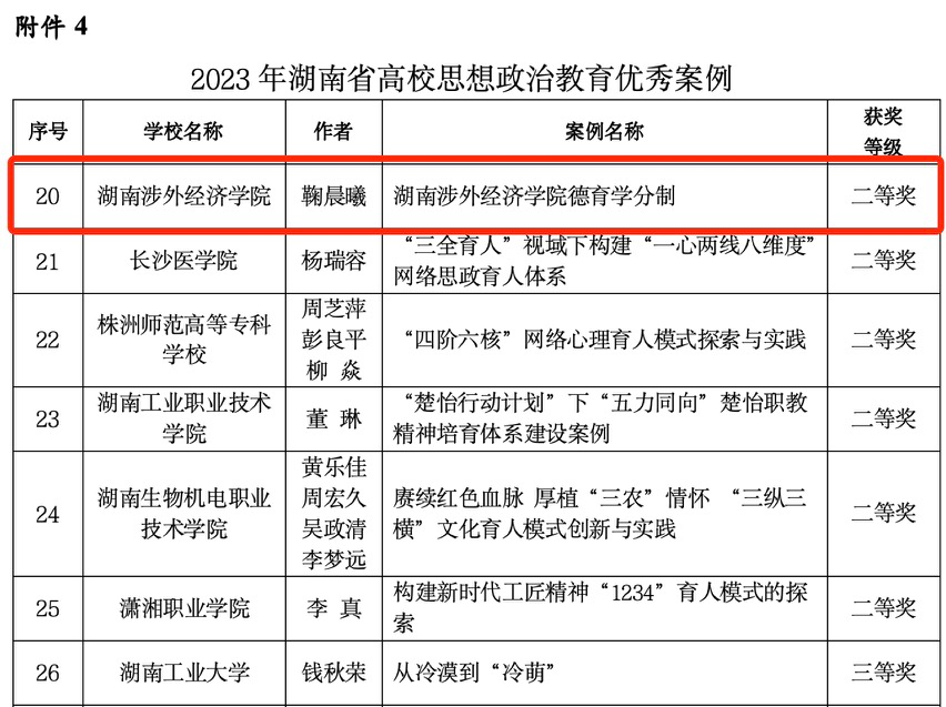 近日,省教育厅公布了2023年湖南省高校思想政治教育优秀案例。我校副校长鞠晨曦撰写的案例《太阳城娱乐德育学分制》获评省级二等奖。