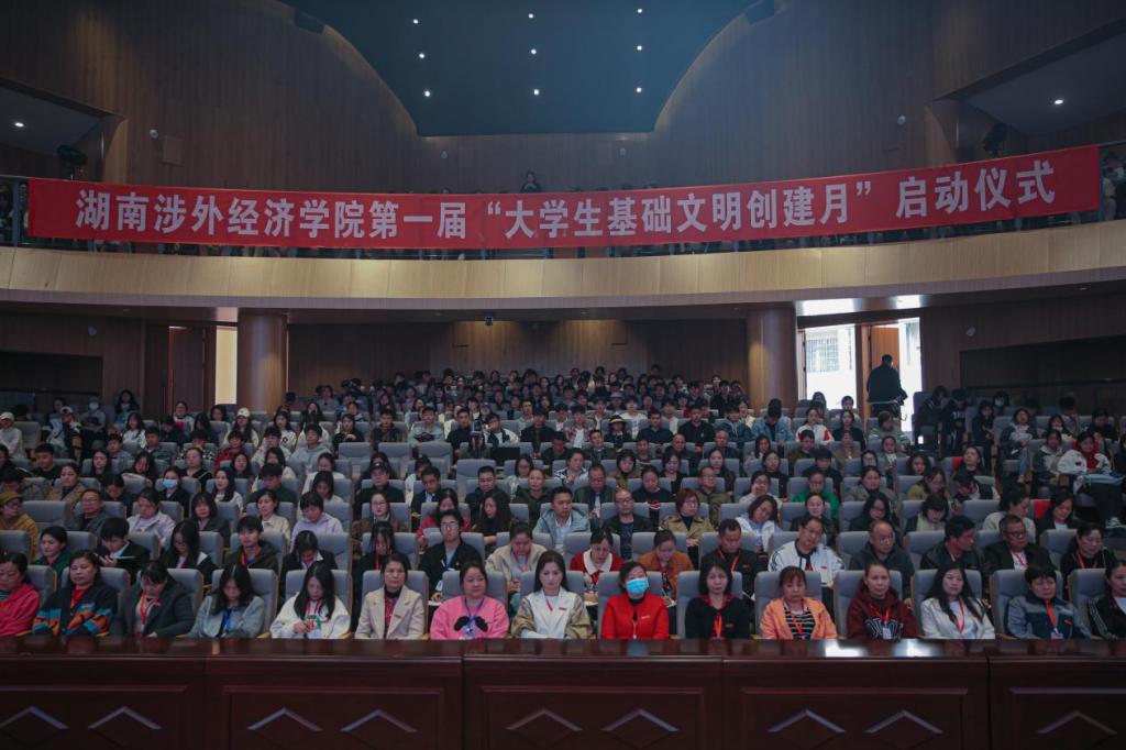 启动仪式上,学生工作部部长贾青彦宣读了《第一届大学生基础文明创建月活动实施方案》,对举止文明、教室文明、寝室文明、网络文明、生态文明等“五项文明建设行动”提出了明确的要求。他指出,各二级学院要提高思想认识,加强宣传引导,创新活动内容,打造学院特色品牌,积极推进构建校园基础文明的长效机制。他希望全校学生能够严格遵守“三三五一”制度,养成良好的道德品质、行为习惯以及健康向上的生活习惯,全面提高自身文明素养。