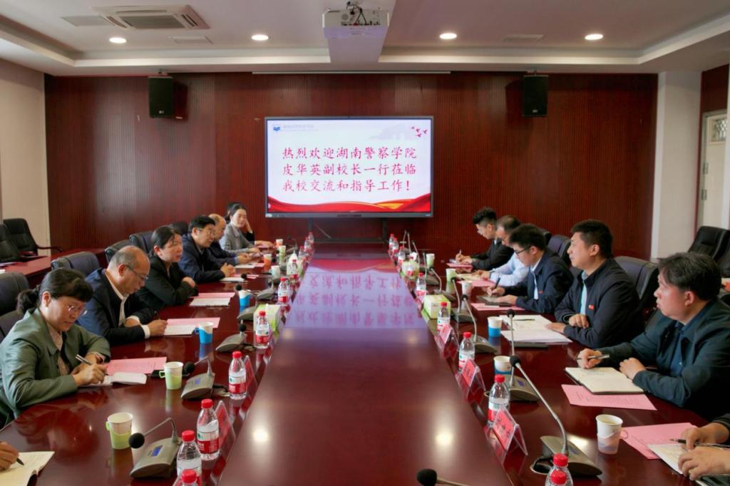 4月12日,湖南警察学院副校长皮华英一行13人来我校考察交流新一轮审核评估工作。副校长高金定出席交流活动。