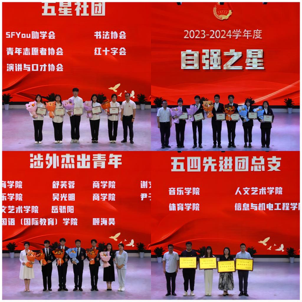 杨念书记致开幕词,他向全校师生致以诚挚的问候,对学校优秀集体与个人表示热烈的祝贺。随后颁奖仪式在朗诵《聆听青年》中正式拉开帷幕,现场依次对共青团荣誉榜、五四红旗团支部、优秀志愿者、五星社团、自强之星、杰出青年、五四先进团总支、五四红旗团总支以及文明班级、文明宿舍、文明标兵、优秀班长、优秀寝室长、优秀楼栋、优秀辅导员、优秀宿管员、优秀学院、先进学院等个人和集体进行表彰。这些荣誉的背后,是我校师生在学术、科研、文艺、校园文明创建等方面的卓越表现和不断付出。