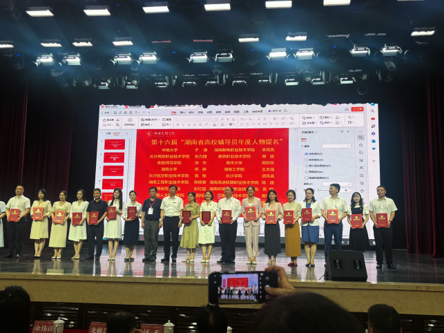 该奖项是辅导员队伍建设的重要奖项,本届“湖南省高校辅导员年度人物”推选展示活动经全省137所高校组织推荐,中共湖南省委教育工委、湖南省教育厅组织专家评选,从8800多名高校辅导员中遴选出第十六届“湖南省高校辅导员年度人物”10名、“湖南省高校辅导员年度提名人物”20名。