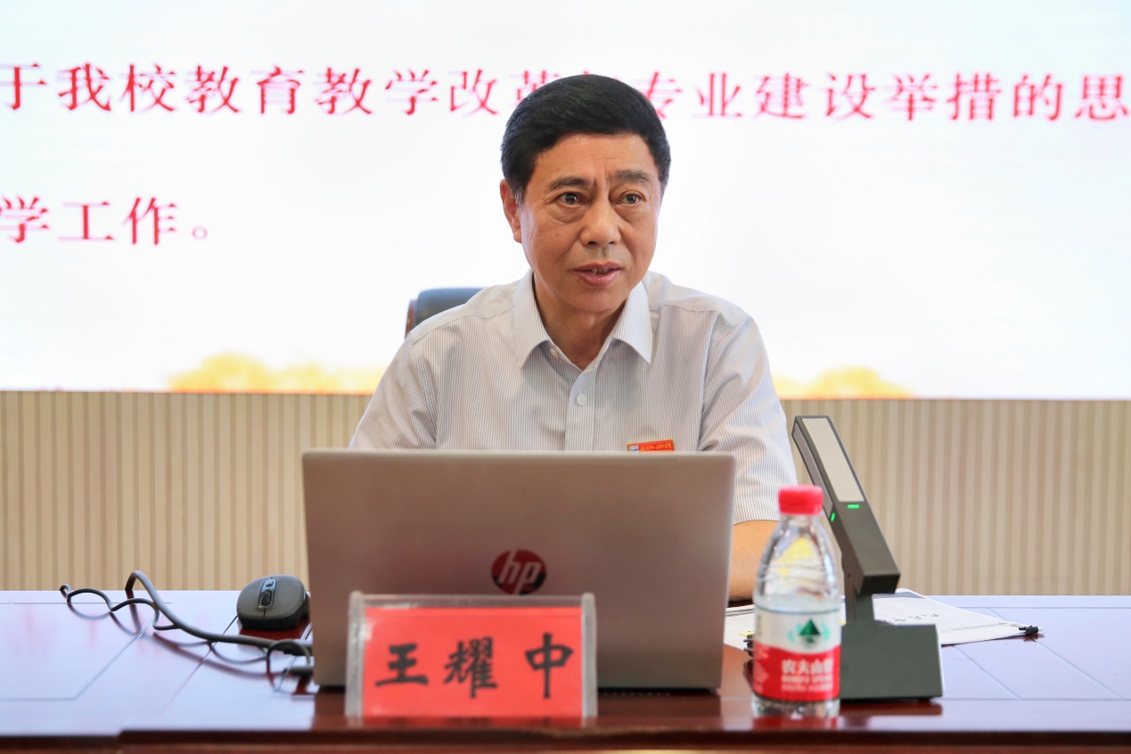 王耀中校长简单回顾了今年上半年来学校改革发展中所取得的阶段性的成果,并就贯彻落实中央、省委的决策部署,谋划推进学校高质量发展,提出来三个方面的具体要求:一是要深刻领会党的二十届三中全会的精神实质,把握好教育综合改革的主要任务和内容,尤其是要从深化教育综合改革的“十大任务”中理解和落实高校面临的改革任务。二是深入分析我校在深化教育教学改革中所面临的形势和任务。他强调要深化教育综合改革,统筹推进育人方式、办学规模、管理体制等变革。三是深入思考我校教育教学改革与专业建设的举措,如何应对挑战,推进教育高质量发展。调整优化专业结构,明确人才培养目标,坚持以学生为中心,以产出为导向,持续改进OBE理念的原则,提升教师教学育人能力,以培养学生的创新思维与实践能力,通过打造优势特色专业集群,注重国际合作与民办教育协同发展,以应对市场需求和挑战,谋划好学校的转型发展以应对资源人口环境变化。他同时强调,新学期在即,各单位要做好开学的各项工作,确保迎新工作与新生入学教育工作顺利进行,全体教职员工要实干笃行凝心聚力,推动2024年下学期各项工作圆满完成。