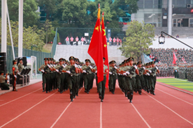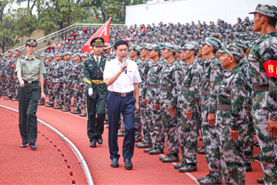 校长王耀中检阅军训方阵