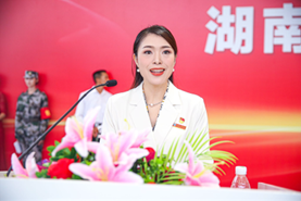 新生代表法学2406班李紫淳上台发言。她从三个方面畅想自己的大学生活:要心怀感恩,感恩学校提供宝贵的学习机会;要无惧挑战,不断超越自我;要合作共进,具备团队意识。