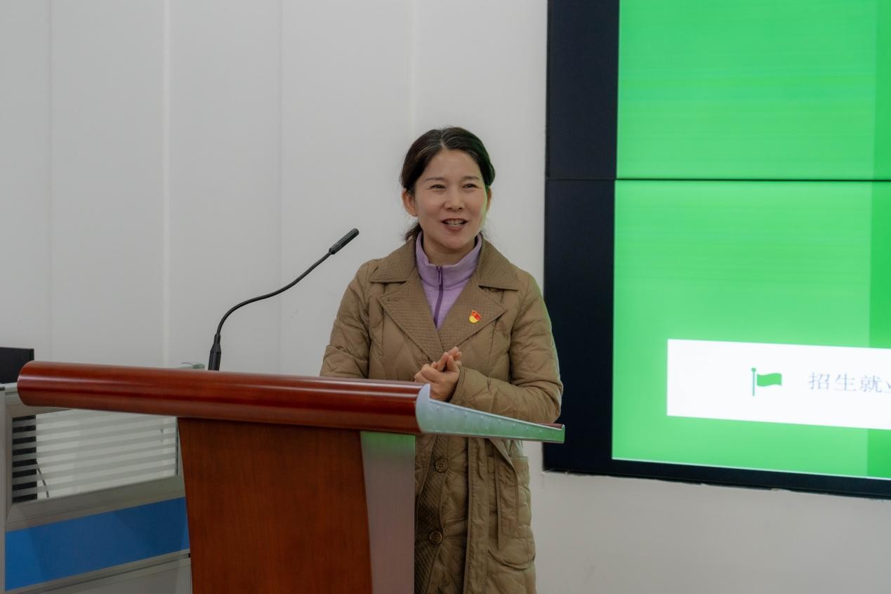 王萍副校长做重要讲话。她指出,就业和招生是学校的核心,所有工作都会体现在这上面,她本人非常重视就业工作,既深入过一线,也做过系统性研究。最后,王萍副校长对全体就业工作人员提出“三高一实”具体要求:三高就是政治站位要高、工作投入度要高、重视度要高,一实就是在确保真实的前提下,实实在在的做工作。