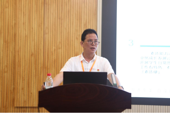 外国语学院党总支书记李向明结合学院工作经验,向全体辅导员分享外国语学院以点带面、双核驱动的学生组织建设模式,通过选拔德才兼备、心理素质好、执行力强、大局观念重的学生干部队伍,开展有味、有料、有效的学生活动,达到润物无声、春风化雨、促进学生成长成才的目的。