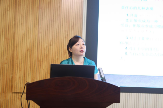 7月5日,商学院辅导员代表黄俭平以“把信送给加西亚”故事为切入点,向大家倡导作为一个职场人应具备的忠诚、敬业、勤奋的精神,黄俭平老师为了所带的学生,为了肩负的责任,自己父亲6年罹患3次癌症,从未请过一天假;就算从4楼楼梯摔下导致韧带拉伤,因为不放心学生,她没有选择请假回家养伤,而是选择住在办公室一个月。黄老师说,她的父亲非常支持她的工作,在离世前的五一节,即便已经因为病痛吃不下饭,仍然在5月3日时,劝说孩子“我知道你把工作看得很重,你今天回学校吧”,没想到一天后黄父就离世了,想到父亲去世时不在父亲身边,黄老师几度潸然泪下,她说,“我虽然遗憾、自责了很多年,但相信身在天堂的父亲一定能够理解我”,在场所有辅导员听之无不动容。