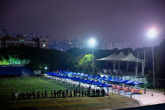 检测过程中,相关工作人员迅速就位,我校疫情防控工作人员和志愿者们积极协助做好受检人员的资料登记、二维码录入、维持秩序等相关工作。全校师生有序集结、积极配合,在我校学生志愿教导大队及志愿者协会学生干部们的引导下,扫码登记,保持安全检测距离,检测完毕后有序离场。各个检测出入口都有相关工作人员及志愿者进行人员引流、分流、疏导等各项工作,严谨对待核酸抽检,没有丝毫懈怠。组织有序的人群中,由音乐学院学生组成的小提琴队伍成为了核酸检测现场一道靓丽的风景线,他们用琴音为检测现场送去了一段段温暖,缓解同学们的紧张情绪。一边是悠扬的琴声余音绕梁,一边是漫长的队伍井然有序,疫情无情人却有情,这些温暖的场景充分体现着我校在此次疫情防控阻击战中党员的先锋模范作用以及基层党组织的战斗堡垒作用。