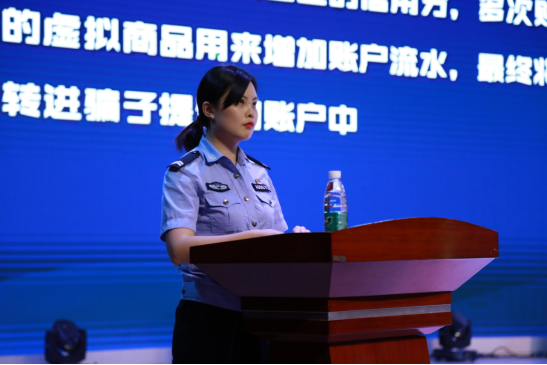 章婷警官以“谨防电信诈骗”为主题,指出电信网络诈骗事件高发的现状,以具体数据呈现了电信网络诈骗的警情概况,并从高发的、常见的电信网络诈骗类型分析中以案说法,指导大家如何辨别诈骗、预防诈骗,并告诫大家拒绝参与诈骗。