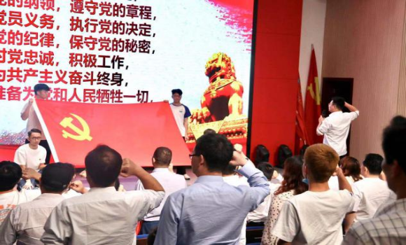 “我志愿加入中国共产党,拥护党的纲领,遵守党的章程……”在宣讲中心,与会人员在宣誓人带领下举起右拳,重温庄严的入党誓词。