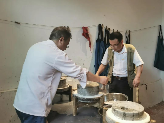 午后大家开展了实践活动,亲自体验了手工磨豆腐、烙煎饼、搓面条、染布匹等农村传统工艺。在实践中实实在在地感受淳朴的乡村气息,思考革命年代里的优秀品质。