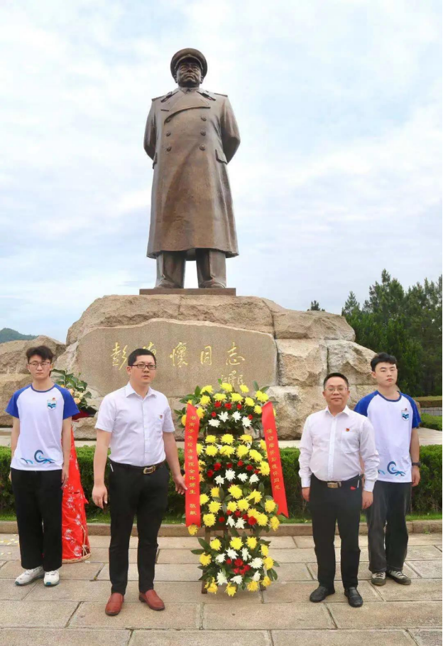 当日上午8时40分,我校师生党员代表团首先到达彭德怀元帅铜像广场。在庄严肃穆的纪念碑前,举行了隆重的悼念仪式,并向元帅敬献花篮,深切缅怀其丰功伟绩。全体师生怀着崇敬的心情,集体默哀一分钟并向铜像三鞠躬。