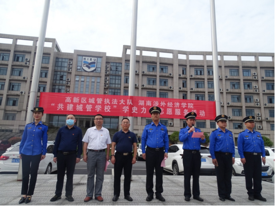 2020年9月,长沙高新区城管执法大队在我校体育馆开展了城管学校授旗仪式,授予我校为“共建城管学校”,让城管执法工作走进校园,越来越多的同学参与到城管执法宣传、文明劝导、环境保护等工作中,营造了城市管理“人人参与、齐抓共管、大家受益”的良好社会氛围。