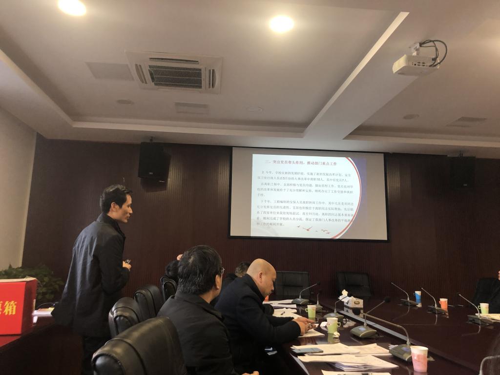 柴世钦结合之前进行的党建年度重点工作目标考核和日常工作考核情况进行了总结。他指出,一年来,各党总支、直属党支部根据党委的统一部署,做了很多工作,取得了一些成绩,为推动学校建设发展做出了贡献,涌现出不少先进典型,在湖南省第二轮党建“双创”评比中取得了较好的成绩。他同时也指出了党建工作中存在的不足,强调只有不断地巩固成绩,改进不足,才能把工作推上新的台阶,才能把工作能力不断提高到新的水平。他对各部门、各总支寒假之前需要完成的推进创建文明高校工作、召开民主生活会和组织生活会、开展党员材料清查、组织新党员宣誓等重点工作进行了强调和部署。