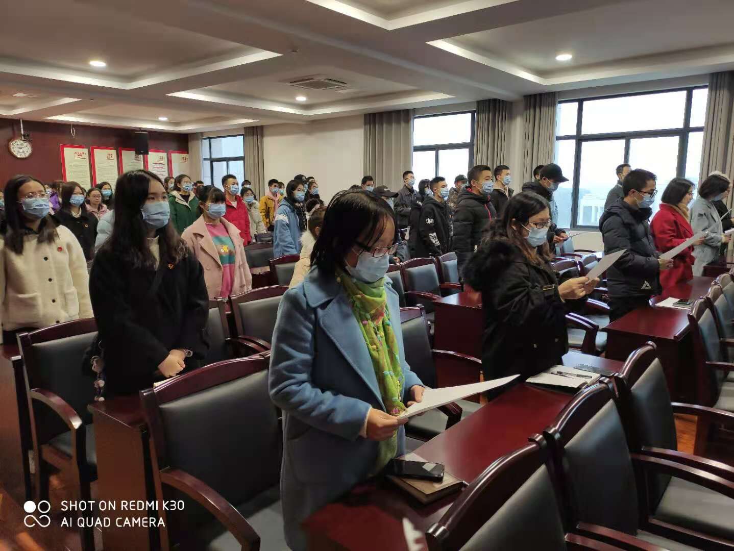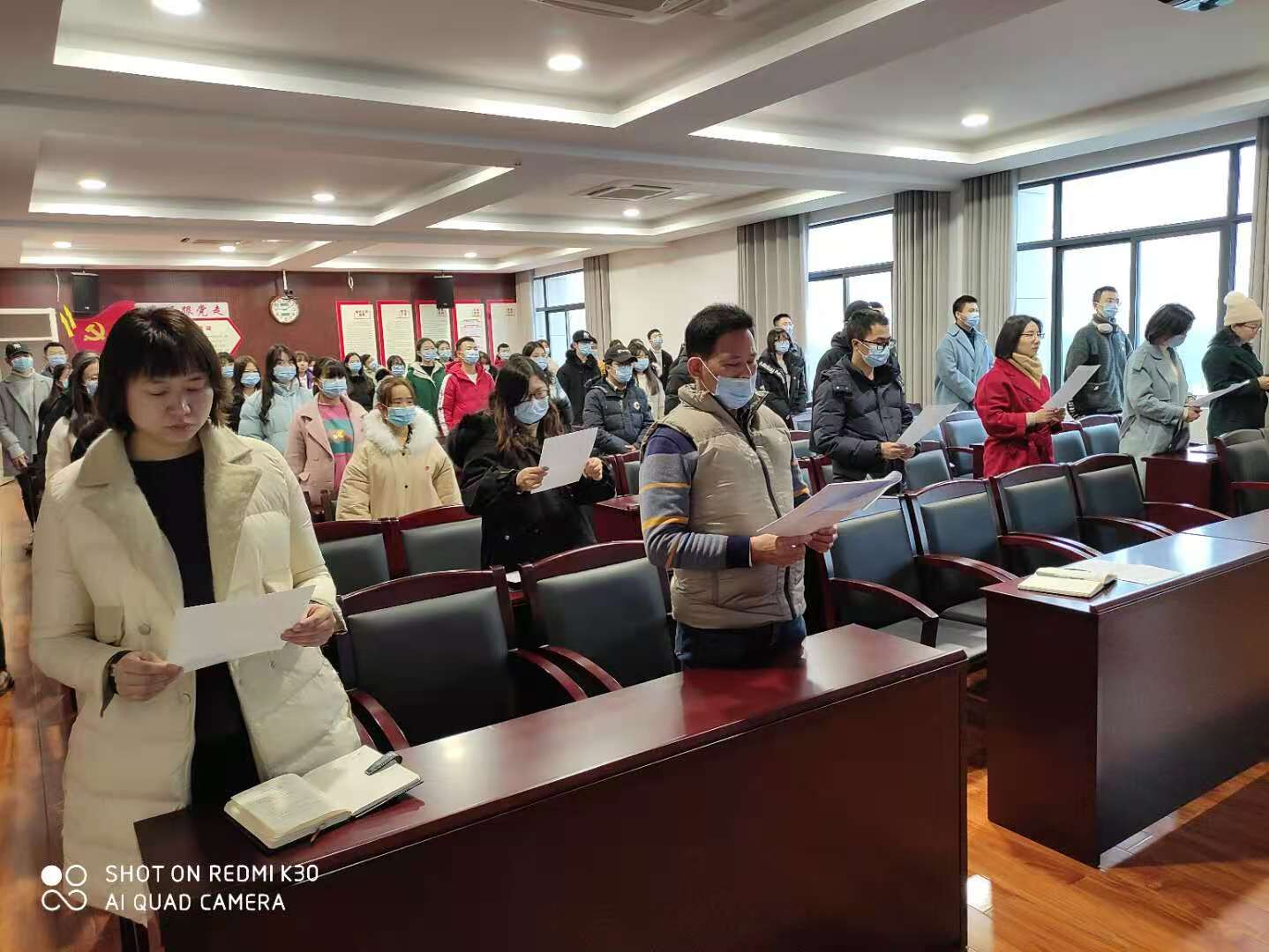 “中华人民共和国实行依法治国,建设社会主义法治国家……”12月4日一早,学校综合楼四楼会议室里便传出了整齐划一的朗读宪法条文的声音,由学工处组织的“宪法晨读”太阳城娱乐分会场活动正在这里举行。