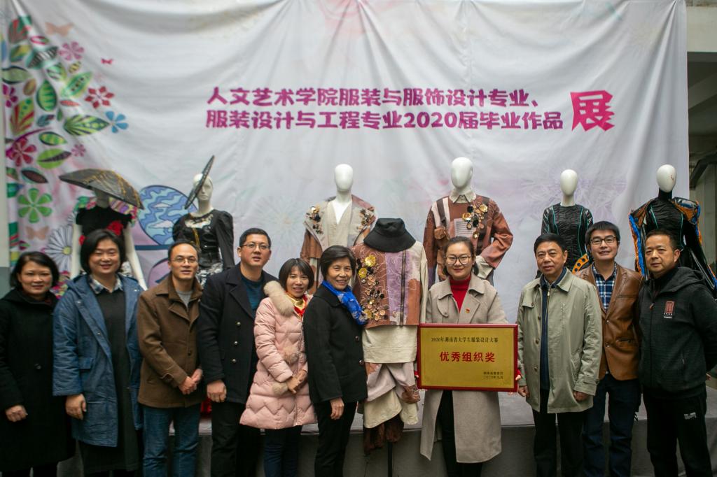 在2020年湖南省大学生服装设计大赛中,我校人文艺术学院服装与服饰设计专业学生在指导老师的带领下,喜获一等奖1个,二等奖1个,三等奖3个,同时我校荣获此次比赛优秀组织奖。在展厅展出的服装设计大赛获奖作品前,校领导们仔细观看,认真听取讲解,详细询问了作品的创作过程和技法寓意,充分肯定了学院通过“以赛促学”“以展促教”等手段,加强实践教学,提升学生动手能力和市场意识的积极意义。人文艺术学院院长陈祥杰向校领导详细介绍了展览的总体情况和作品风格,表示将按照校领导的指示和要求做好教育教学工作,提高学生实践动手能力。