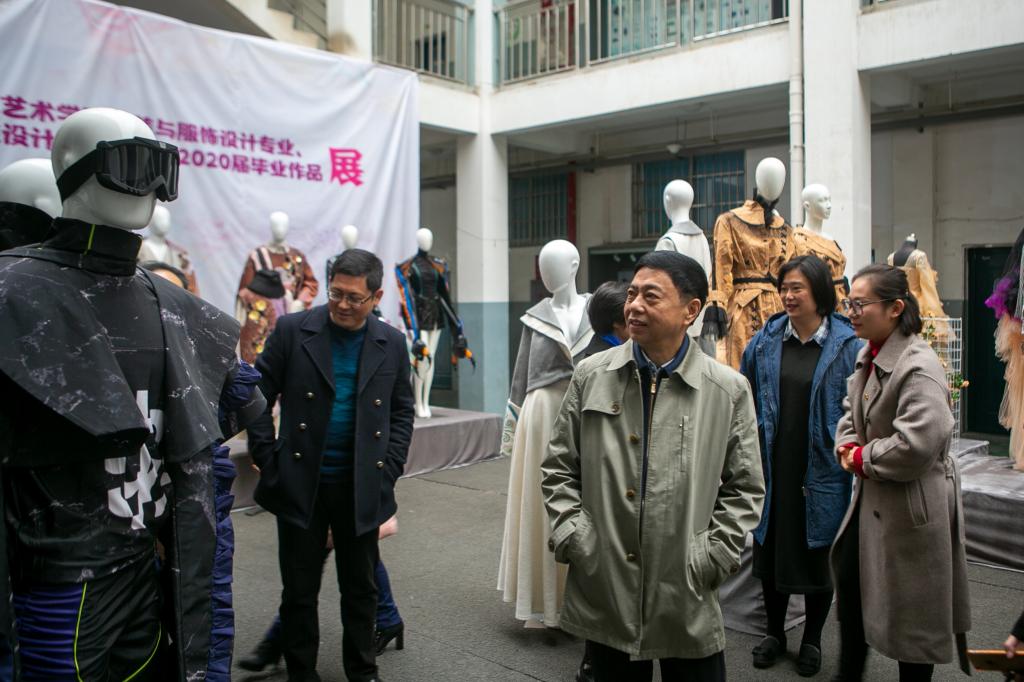11月23日上午,校长王耀中、副校长白解红前往人文艺术学院展厅,参观人文艺术学院风景写生实践教学作品汇报展和服装设计毕业作品展。