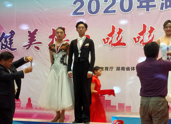 2020年湖南省大中学生体育舞蹈比赛于11月7-9日在湖南网络工程职业学院圆满落幕,参赛单位包括来自湖南师范大学、湖南大学、中南大学、湖南科技大学、湖南人文科技学院、湖南文理、第一师范等20余所高校,近500多名运动员参加本次比赛,赛事历时三天。我校体育学院派出刘伟老师及15名表演系学生组成的体育舞蹈队参加了本次比赛。经过数日拼搏,我校代表队不畏艰难、不负众望,在此次比赛中获得金牌一枚、银牌一枚、铜牌两枚及其他奖项若干的优异成绩。