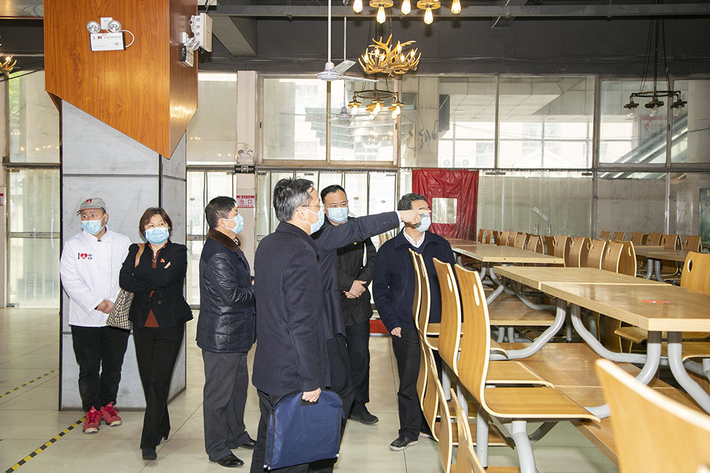 “口罩、消毒液、额温枪等防控物资准备得怎么样?”“有没有根据湖北籍学生的特殊情况制定具体措施” “学生来校后,就餐、住宿如何安排?””有没有制定相应的疫情防控工作应急预案?”……王建华一行详细听取了学校疫情防控、信息摸排、线上教学等前期工作情况汇报,认真查阅了学校制定的相关制度、工作指南与工作台账,并实地查看了门岗、图书馆、食堂、宿舍等的防控情况。王建华对学校的疫情防控与开学准备给予了肯定,同时对下一步工作提出要求。他指出,学校上下要高度重视疫情防控和开学准备各项工作,确保不因思想松懈出现疏漏,产生问题;要建立学校与社区、街道、医院等疫情联防联控无缝对接工作机制,确保应急处置反应迅速、配合紧密;要加强对疫情重点地区特别是从国(境)外返回的师生员工的排查和把控,严防疫情输入风险;要平稳有序地推动在线教学工作,确保教育教学质量;要根据新要求不断完善工作方案,确保口罩、测温枪、消毒液等防控物资充足。他强调,疫情防控工作关系到每一位师生的身体健康,关系到社会的稳定和谐,全校上下要提高政治站位,层层压实责任,切实把防疫各项措施落到实处,确保疫情防控和开学安全工作万无一失。