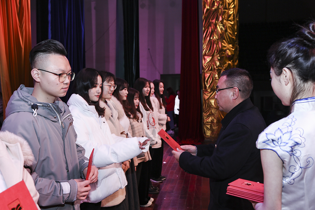 李向明书记宣读表彰名单,对同学们过去一年的辛勤付出作出肯定,同时也表达了对同学们的衷心祝贺。出席领导分别为班团建设先进班级、学科竞赛优秀学生、优秀朋辈辅导员以及社会实践优秀学生颁发荣誉证书。