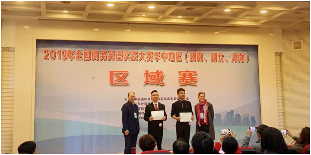 11月9日,我校外国语学院商务英语系代表队参加2019年全国商务英语实践大赛华中区决赛,荣获一等奖,将代表华中赛区参加全国总决赛。外国语学院商务英语系201705班张涛同学获得“个人风采奖”。