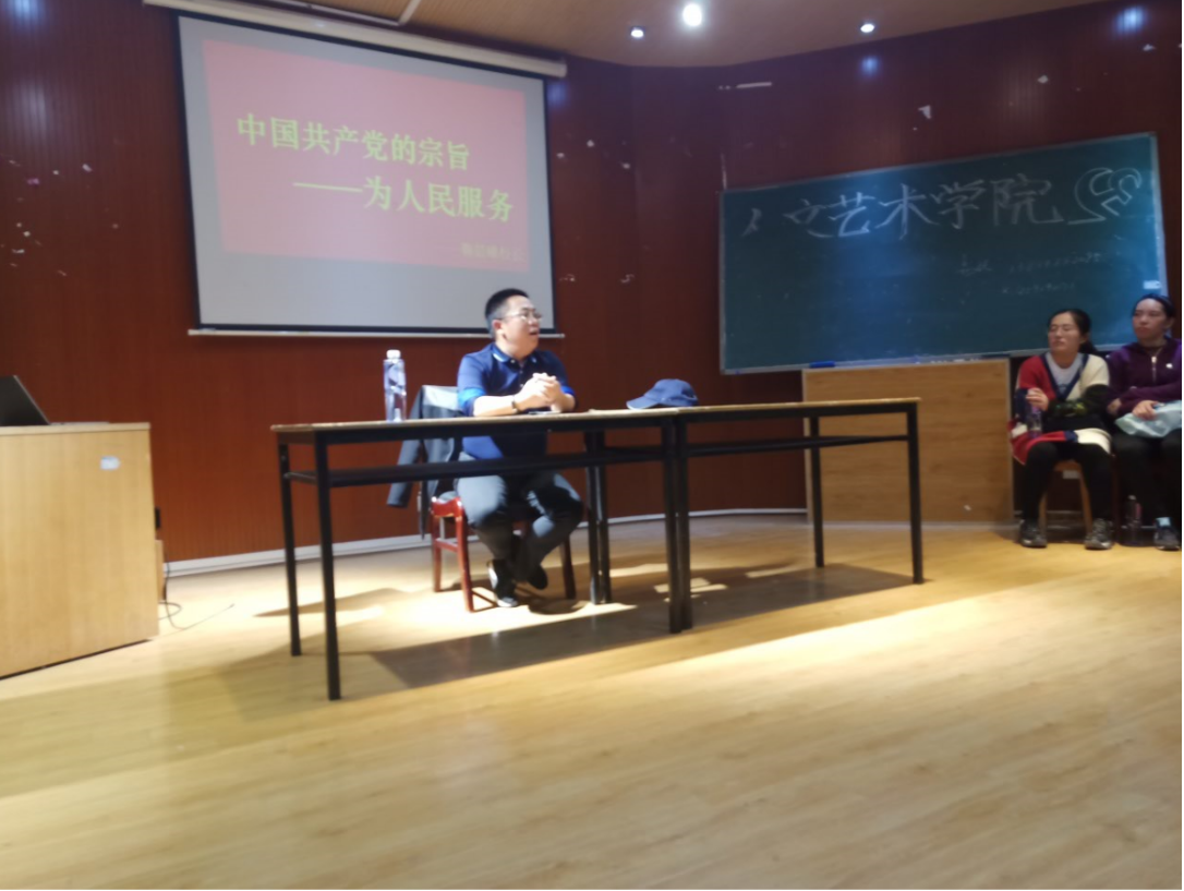 为深入学习贯彻习近平新时代中国特色社会主义思想,进一步提高入党积极分子的思想觉悟,10月28日晚,鞠晨曦副校长来到人文艺术学院,为入党积极分子讲“中国共产党的宗旨—为人民服务” 主题党课。人文艺术学院党总支书记丁洋,全体人文艺术学院辅导员老师以及四百余名入党积极分子参与听课。