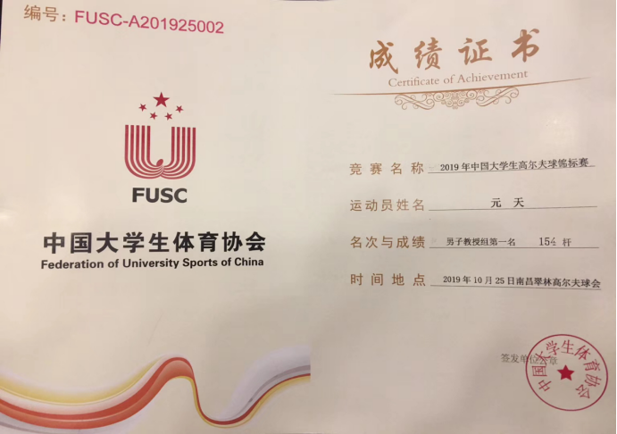 经过五天激烈的比拼,我校高尔夫球代表队各运动员不畏强手,沉着应战,取得优异成绩的同时,也增进了友谊。最终,我校元天老师发挥出色,夺得教授组个人总杆冠军,胡梓茂拿下女子个人专业组总杆季军,我校代表队获得学生专业组团体总杆季军。