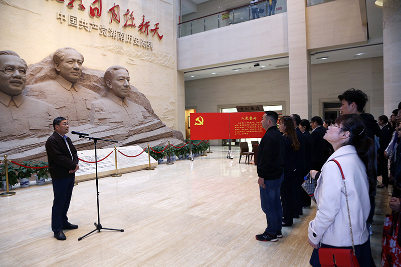 故事会后,大家在讲解员的带领下参观了湖南党史陈列馆。党史陈列馆布展以“敢教日月换新天——中国共产党湖南历史陈列”为主题,以历史轴线为脉络,讲述了“开辟新天地——新民主主义革命时期”、“描绘新画卷——全面建设社会主义时期”、“谱写新篇章——改革开放时期”三个不同历史时期发生的重大事件。
