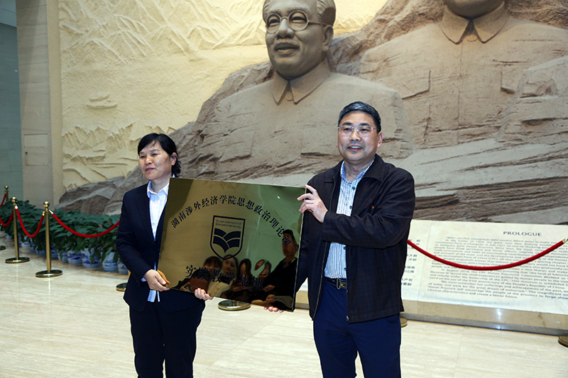 5月7日下午,由学校党委书记柴世钦亲自带队,思政部教师代表、第七直属支部全体党员以及学生代表一行60余人乘车前往湖南党史陈列馆,参加基地签约挂牌仪式并开展主题党日活动,受到了湖南党史陈列馆邓玉香副馆长等馆领导的热情接待。下午三点,授牌签约仪式在湖南党史陈列馆大厅“潇湘魂”雕塑前举行,柴世钦书记代表学校向党史陈列馆授牌,思政部李故新主任代表学校和党史陈列馆邓玉香副馆长进行合作签约。授牌签约仪式结束后,柴世钦书记作重要讲话。他向与会人员介绍了我校思政理论课建设情况以及建立思政理论课实践教学基地的重要意义,他希望思政部借助党史陈列馆这个很好的合作平台,加强与党史陈列馆的友好合作,不断推进我校思想政治理论课教育教学改革。柴世钦书记寄语我校学子要勤奋学习,完善自身,不负美好青春年华,为实现中华民族伟大复兴中国梦而努力奋斗。
