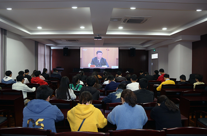 4月30日上午,纪念五四运动100周年大会在人民大会堂举行,中共中央总书记、国家主席、中央军委主席习近平出席大会并发表重要讲话。我校团委组织团学骨干在新综合楼四楼会议室观看了会议的现场直播,学校广大师生也通过电视、互联网、手机客户端等方式收听收看了习近平总书记的重要讲话。