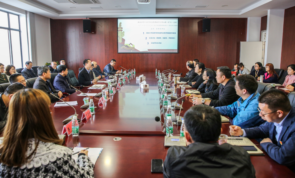 3月29日下午,我校党委理论学习中心组(扩大)学习会议在综合楼二楼会议室召开,这次学习会议是在思政课部组织学习习近平总书记在学校思想政治课教师座谈会上的重要讲话基础上举行的,邀请教育部高校思政课教指委委员、博士生导师、湖南大学岳麓书院党委书记陈宇翔教授作报告,校党委书记柴世钦主持会议,校领导王耀中、白解红、鞠晨曦、汪东明,二级学院党总支书记及相关职能部门负责人,思政课部全体教师参加会议。