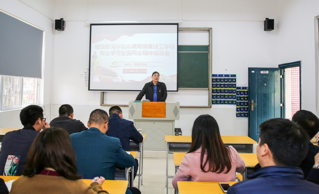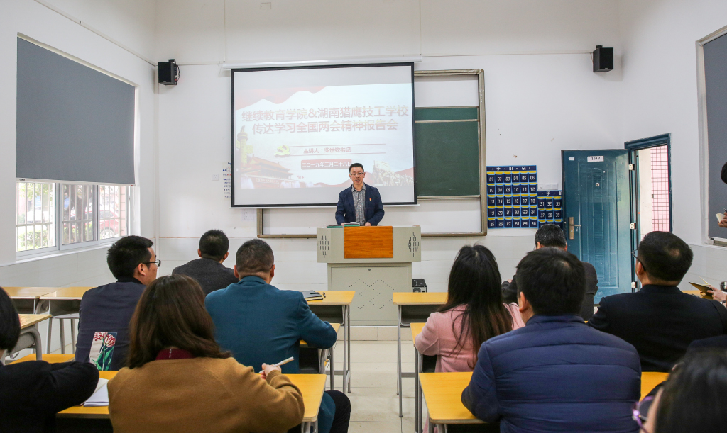 为进一步贯彻落实全国两会精神,顺应新时代发展要求,推动继续教育学院持续良好发展,3月28日12:30,继教院于十二教103教室举行传达学习全国两会精神报告会议。本次会议由学院廖立彬书记主持,特邀学校党委书记柴世钦作全国两会精神辅导报告,继续教育学院党员教师以及学生党员参加会议。