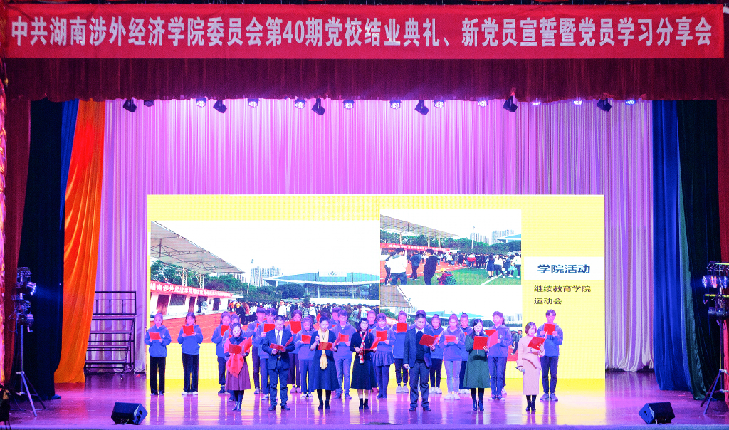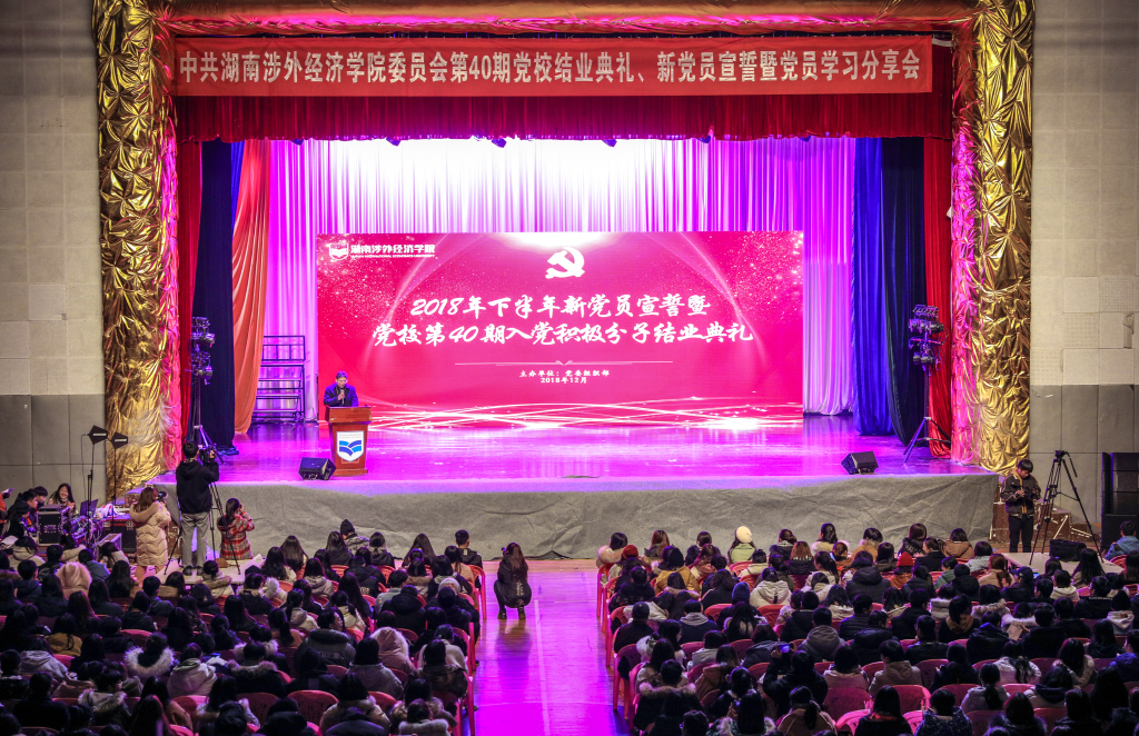 1月3日晚7点,2018年下半年新党员宣誓暨党校40期入党积极分子结业典礼、习近平新时代中国特色社会主义思想党员学习分享会在体育馆隆重举行。校党委书记柴世钦,副校长鞠晨曦、汪东明,各学院和各职能部门负责人以及部分师生代表出席活动。