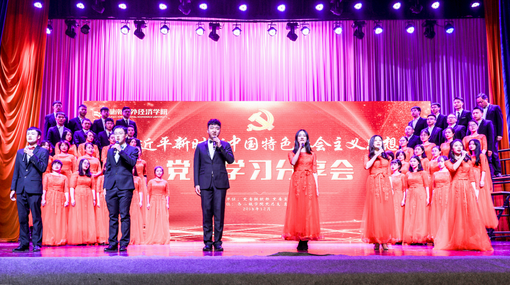 在大学习中,习近平总书记的很多金句深入人心,比如“文化兴国运兴,文化强民族强,”“博大精深的中华优秀传统文化是我们在世界文化激荡中站稳脚跟的根基”。在文法学院同学们带来的《文化里的中国》中,师生们一起感受中华文化之美,坚定文化自信。加强理论学习,是一种政治责任、一种精神追求、一种思想境界,全体党员师生要主动地学、自觉地学,在读原著、学原文、悟原理上下功夫,才能深学深悟、常学常新。信息与机电工程学院同学们带来了对习近平总书记重要讲话的学习心得。跟随管理学院同学们带来的《峥嵘岁月》、第一直属支部带来的《学习理论明方向 彰显党员急先锋》、继续教育学院带来的《不忘初心,砥砺前行》,大家深深体会到从南湖起航到奋楫金沙江、从四渡赤水到饮马长江、从引领改革潮到引航中国梦,中国共产党始终不忘初心,带领中国人民实现从站起来到富起来、再到强起来的伟大飞跃的壮志豪情。艺术设计学院的学子在《跟党走,践我行》节目中,用舞台剧形式展示了支教学子对习近平新时代中国特色社会主义思想的学习践行。体育学院带来《青春中国》、国际教育学院带来《无问西东》,让师生深深体会到习近平新时代中国特色社会主义思想对青年人的重大指引作用。外国语学院带来的《看中国》则反映改革开放40年来,中国人民用双手书写国家和民族发展的壮丽史诗,推动了中国和世界的共同进步。商学院带来的《走进新时代》对习近平新时代中国特色社会主义思想的丰富内涵进行了阐述。最后,音乐学院带来《追寻中国梦》,生动地诠释了追梦需要理想和激情,圆梦需要奋斗和奉献。新时代的青年党员,唯有不忘初心,尽职尽责,才能担当新时代的建设重任。