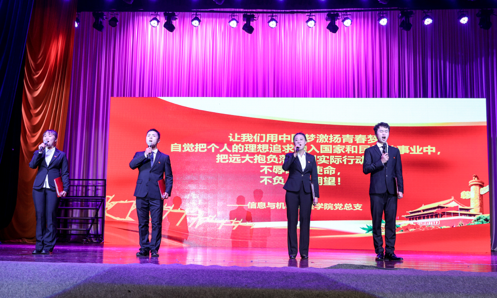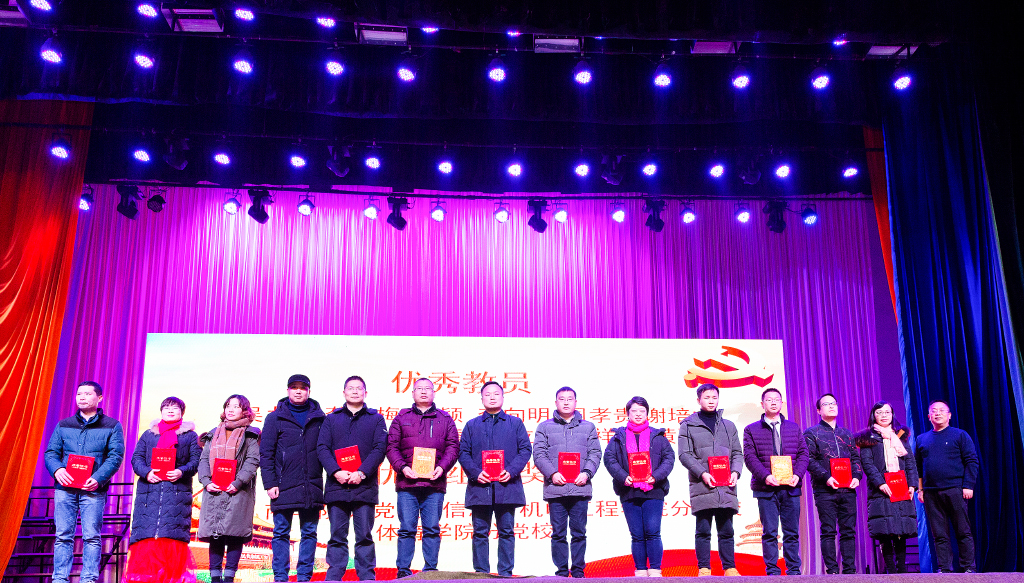 第二个环节是习近平新时代中国特色社会主义思想党员学习分享会。分享会由中共太阳城娱乐委员会主办,党委组织部、党委宣传部承办,各二级学院党总支和直属支部协办,为大家带来了十一个思想深刻、形式新颖的节目。