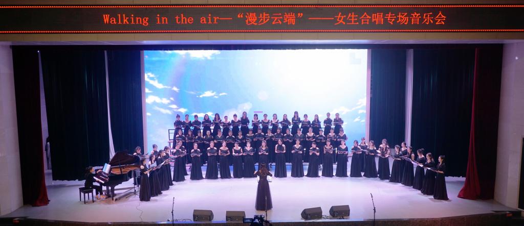 12月12日晚7点,我校音乐学院主办、长沙大音电子科技公司承办的Walking in the air“漫步云端”女声合唱专场音乐会在音乐学院音乐厅举行。我校副校长陈斌、副校长鞠晨曦,音乐学院院长王跃辉,音乐学院党总支书记王治国,校团委书记戴薇,以及湖南师范大学音乐学院李虹教授等领导嘉宾莅临现场。汤晓汀老师和龙涧老师分别担任本次合唱专场音乐会的指挥和钢琴伴奏。