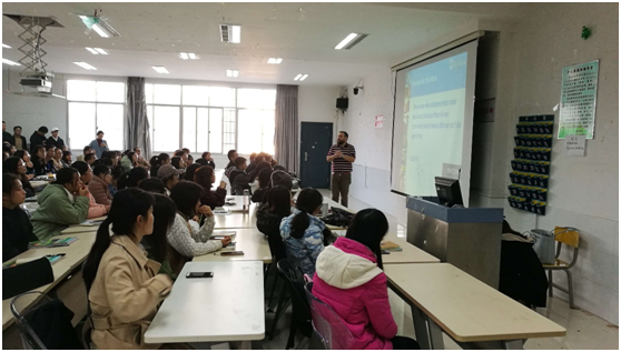 11月23日上午,英国北安普顿大学(University of Northampton)商法学院会计与金融系主任Ewan Tracey博士以及北安普顿大学中国办公室曾智胜主任来访。Ewan Tracey博士在三教学楼205教室,面向我校商学院、外语学院、管理学院、国际教育学院相关专业的学生,作了一场主题为“Sources of Finances, Cost of Capital”的学术报告。Ewan Tracey博士以买卖手机的例子为切入点,引出讲座主题。他归纳了资金的三种来源即借贷、投资、获利,并通过对比英国企业和迪拜企业,分析了三种资金来源的成本优劣性。Ewan Tracey博士全英文的讲座生动有趣,让大家感受了英国课堂的独特魅力。