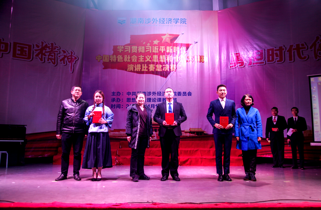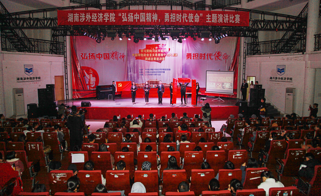 为深入贯彻学习党的十九大精神,学习习近平新时代中国特色社会主义思想,庆祝改革开放四十周年,引导我校学生坚定崇高理想信念,弘扬中国精神,不负时代使命,展现青春风采。在校党委的领导下,思政课部于11月15日晚在世纪讲坛举行 “弘扬中国精神,勇担时代使命”主题演讲比赛活动。本次演讲比赛得到了学校领导的高度重视以及各学院的大力支持,学校党委书记柴世钦教授全程观看并出席颁奖仪式。