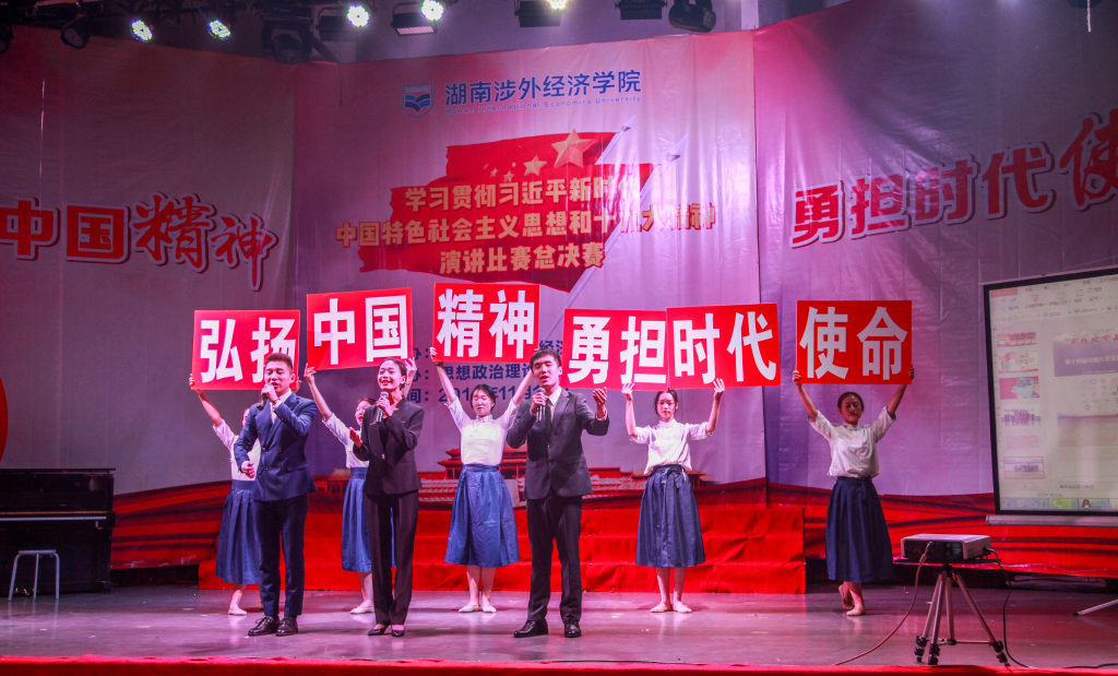 中国共产党自诞生之日起,在领导中国革命、建设、改革的伟大进程中诞生了许许多多宝贵的精神财富,本次演讲比赛的主题以时间发展顺序为轴线,节选了其中九个具有时代特征的中国精神进行讲演。从中国共产党革命精神历史起点的红船精神,到刻着人类坚定无畏丰碑的长征精神,再到“拼搏、奉献、团结、自强”的抗战精神……到如今锐意进取、敢于创新的创新精神,九个学院代表队选手都用深情的演讲,结合时代特色与当代实际,融入音乐、视频、演唱、舞蹈、书法等多种辅助表演形式,多层次多维度立体的展现当代大学生对中国精神的理解,以及传承这种精神的决心。整场比赛精彩纷呈,有演有讲,是一场别开生面的视听享受,充满了积极、向上、勇敢、坚强的正能量。最后,经过紧张的比拼,信息与机电工程学院和音乐学院获得本次比赛一等奖,文法学院等获得二等奖、商学院等获得三等奖。