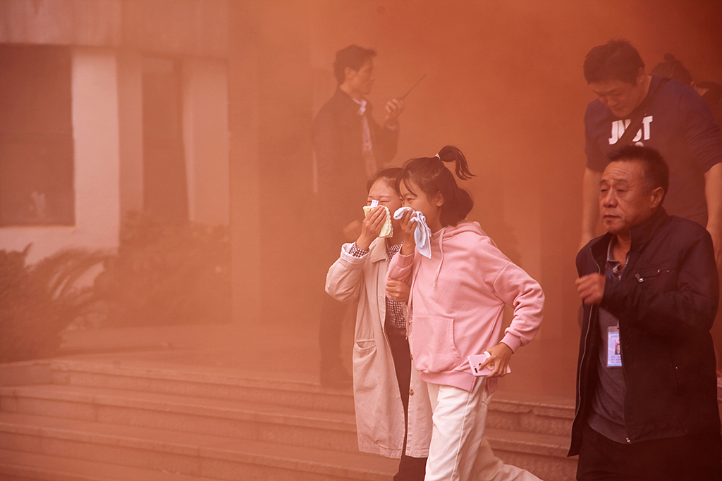 下午1:40,随着数枚演习烟雾弹的燃放,本次消防演习正式开始。各班负责老师、楼层指挥人员在警报响起的第一时间赶到所负责区域,沉着冷静地指导学生用湿毛巾捂住口鼻,放低身体快速从相应的安全出口有条不紊地撤离楼栋。随后高新区消防大队救援人员到达演习现场,迅速进入楼栋搜寻被困人员并组织救援。其中东十二栋501寝室作为本次消防演习的被救援寝室,她们配合着救援人员,形象地展示了当学生遇到火灾时应如何自救。消防官兵们更是现场展示了如何用灭火枪消灭火源,如何运作云梯接应被困人员离开火场。整个演习过程仅用时十分钟,取得了圆满成功。